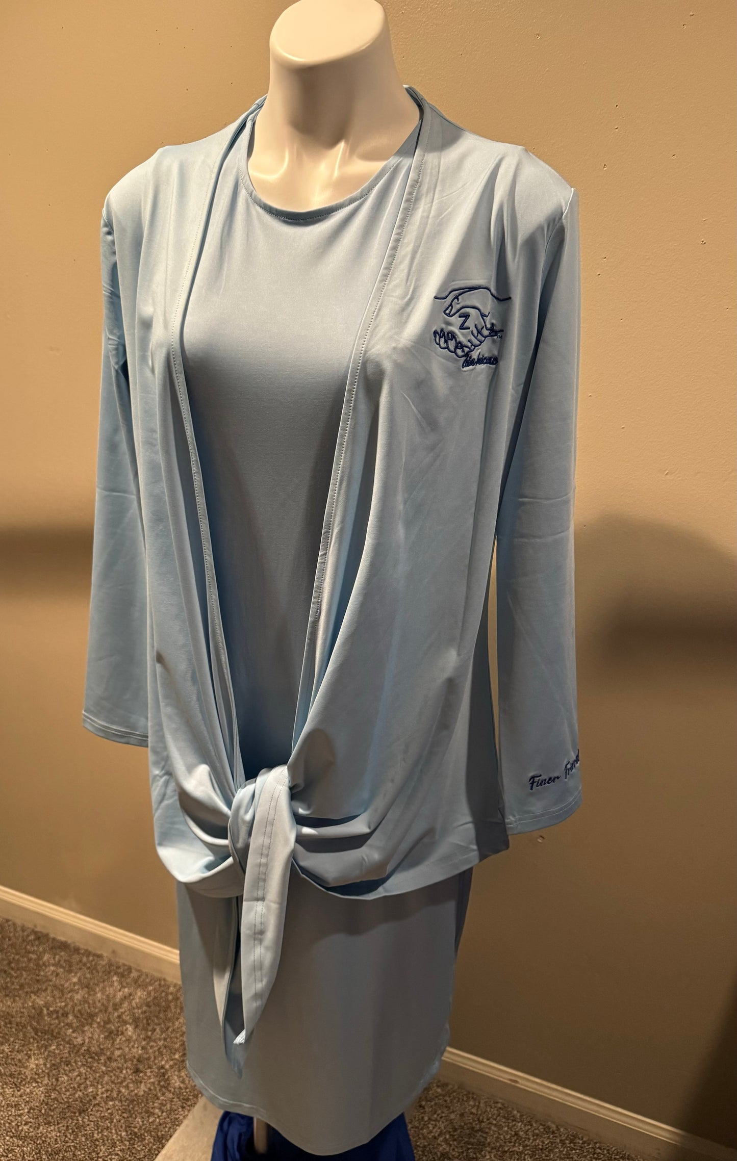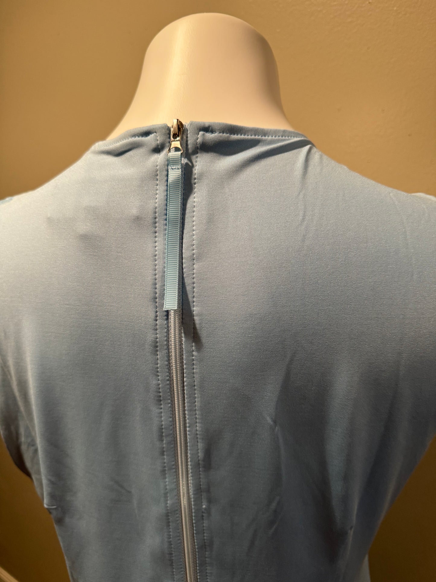 Our exclusive Zeta Amicae "Finer" Sheath Dress pairs perfectly with our Twin Set. Made of the same material, this dress is perfect for any occasion business, casual. Can be worn alone or paired with our twin set cardigan or a contrasting blazer to head to a business meeting. Dress with be in the Amicae standard color and will match the 2pZnAPod Amicae Twin Set with the same color and logo. Another staple for your wardrobe we are sure you will be pleased with! This dress is perfectly stitched to snatch you in the right places and is embroidered with the shield embroidered on the front. This dress has a heavy weight lycra feel. It packs & travels very well.