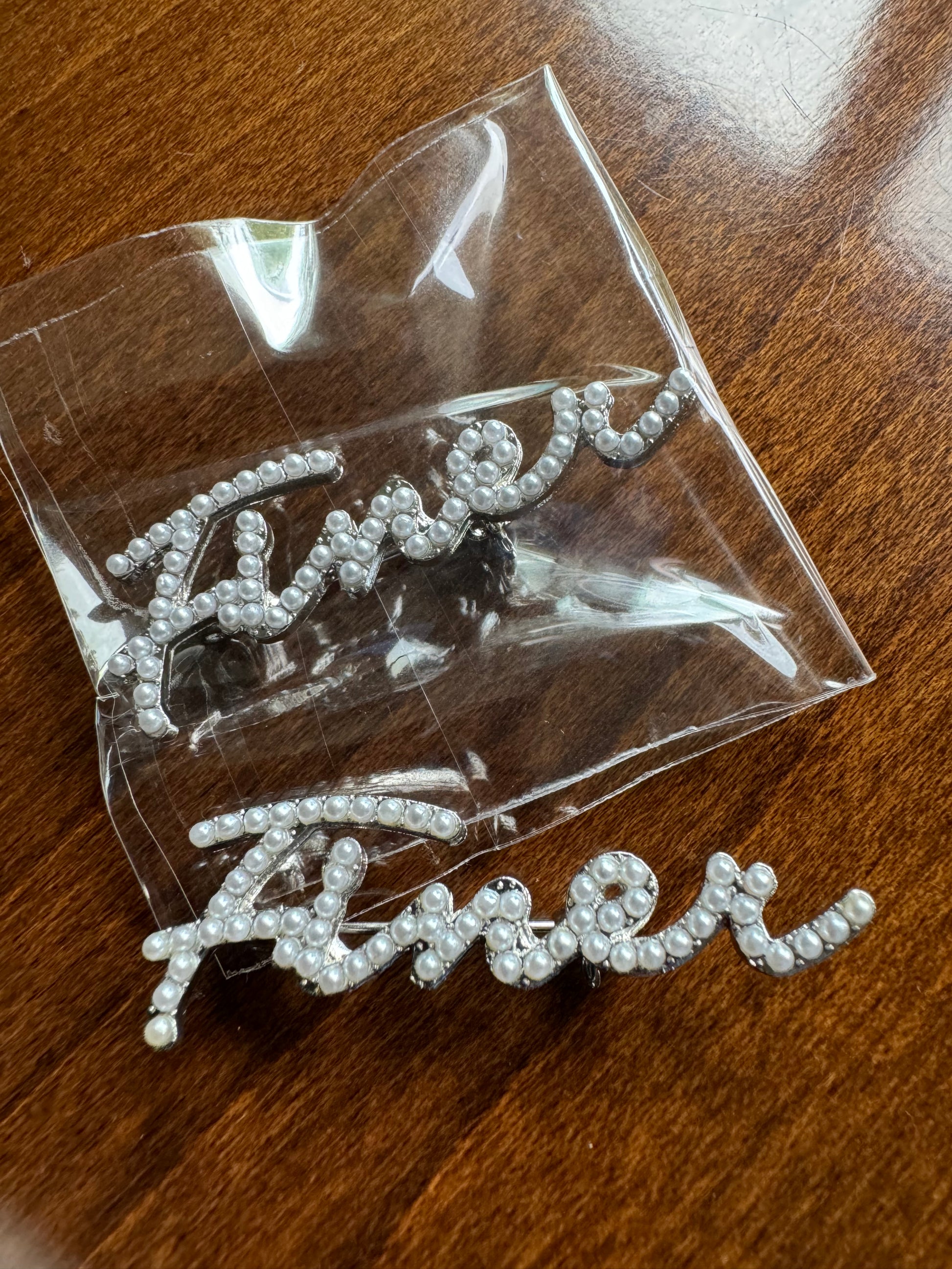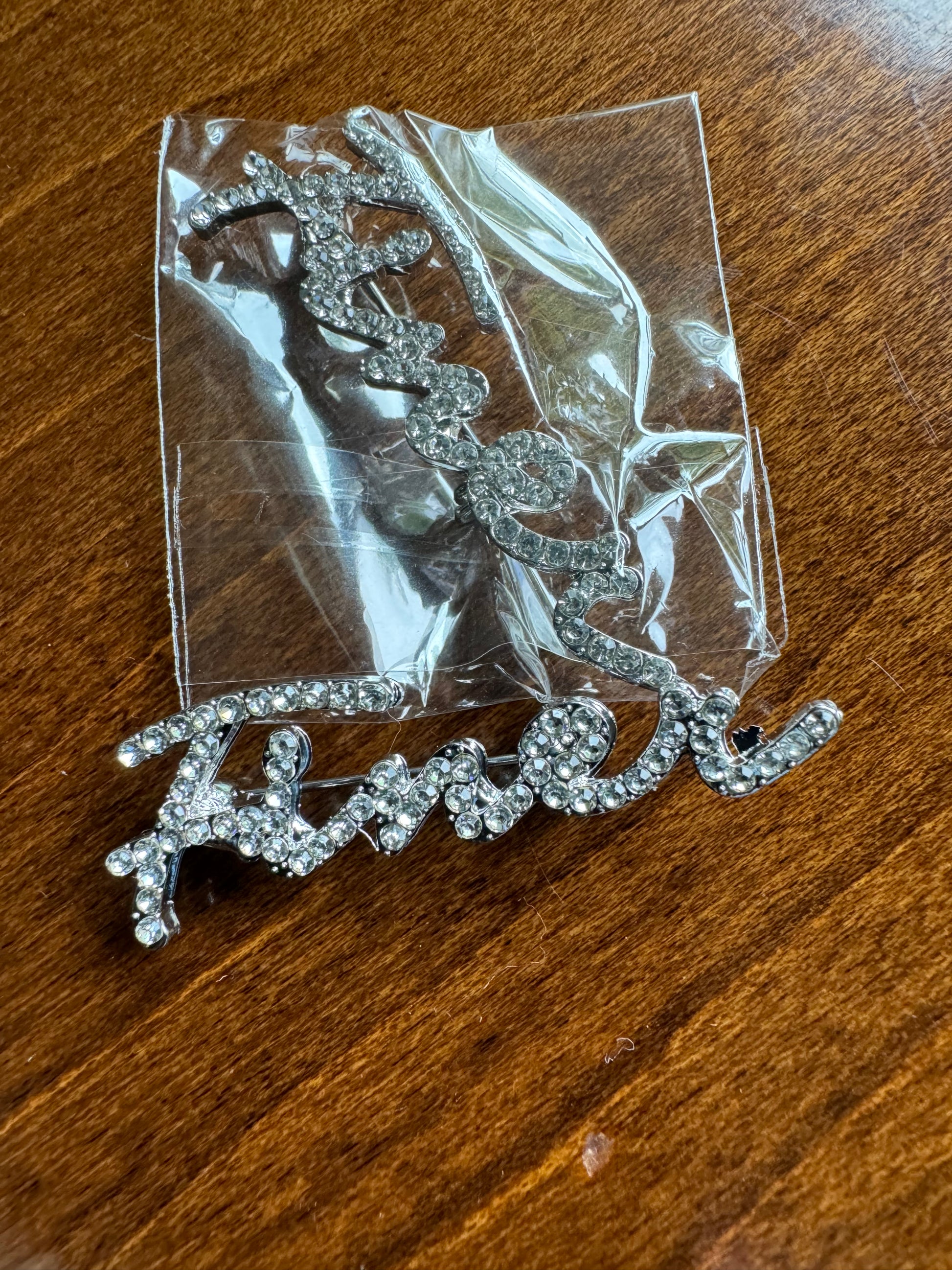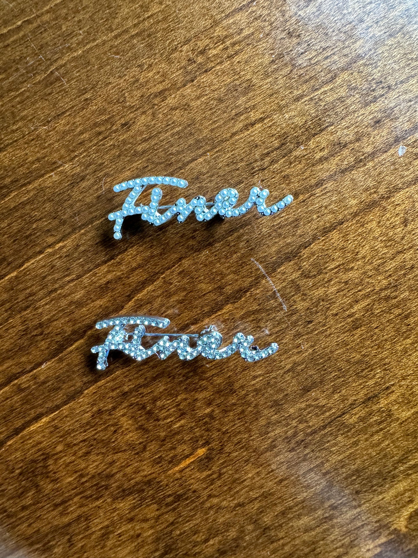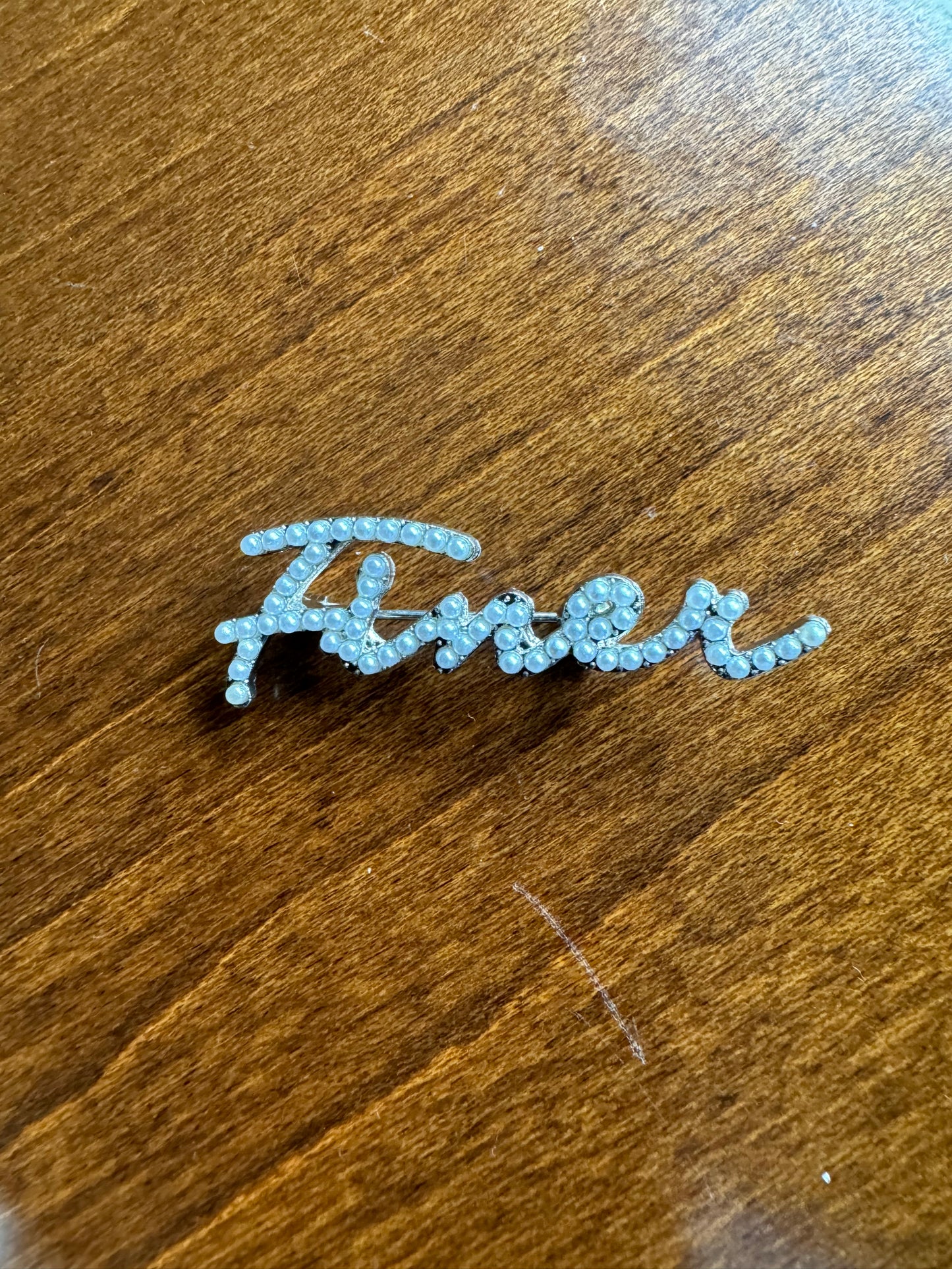 This is a gorgeous feminine lapel pin to add to your collection. This is a 1 5 inch pin adorned in either clear stones or pearls.