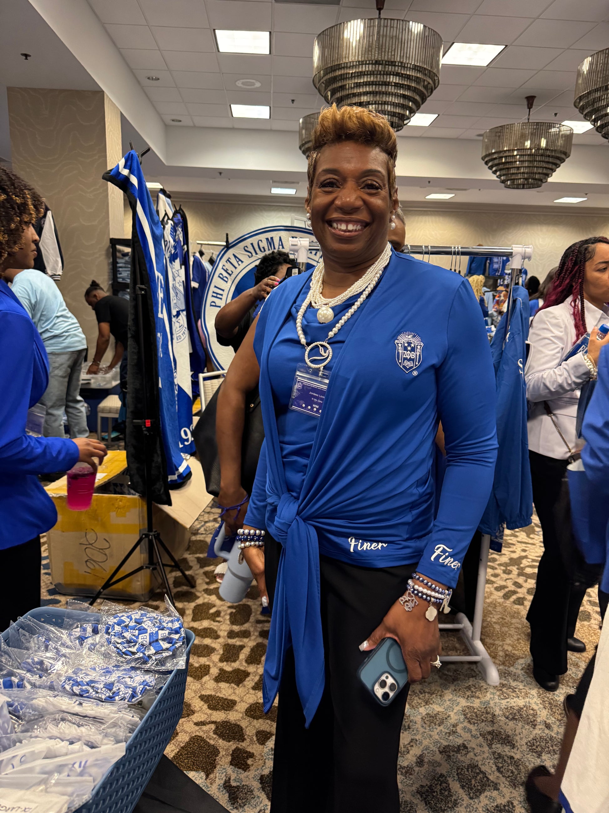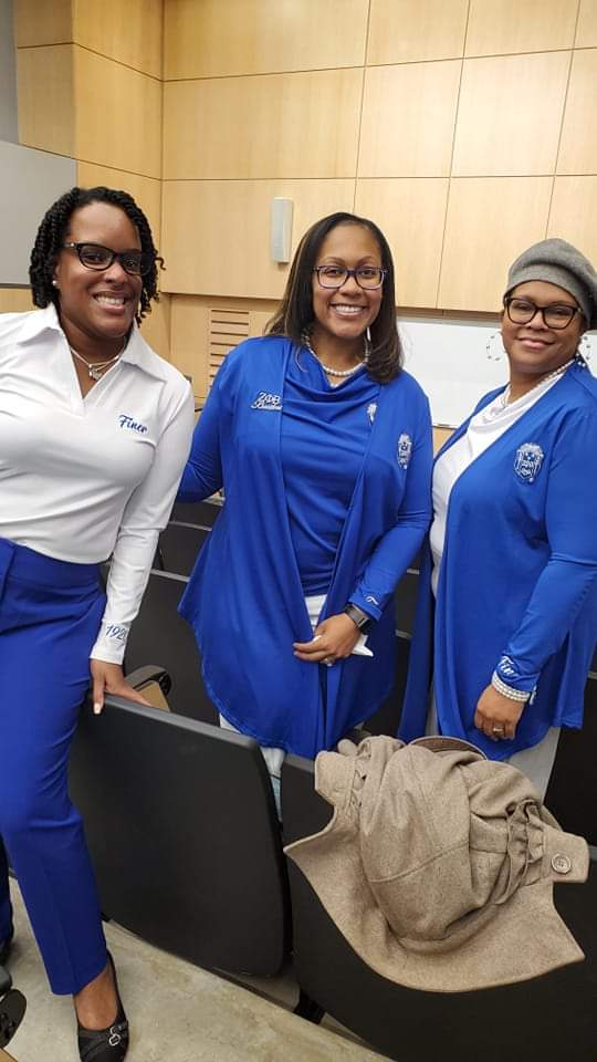 Our exclusive "Finer" Twin two piece set will have you Zeta business ready looking sharp and sophisticated in the office and at your organizational meetings! Refreshed with the Shield, it is a staple for your Zeta wardrobe! It's a perfect fit, no matter your size. Royal Blue Long Sleeve open front cardigan with matching tank is embroidered with Zeta Shield and the word "Finer" in white at the bottom. Cardigan has handkerchief hem in front that you can leave open or tie and the tank has a draped cowl neckline. Wear it as a perfect set or match each piece separately with your favorite white apparel. It has a heavy weight lycra feel. Designed to have a fitted feminine look so if you don't want it to hug your curves, please go up a size!