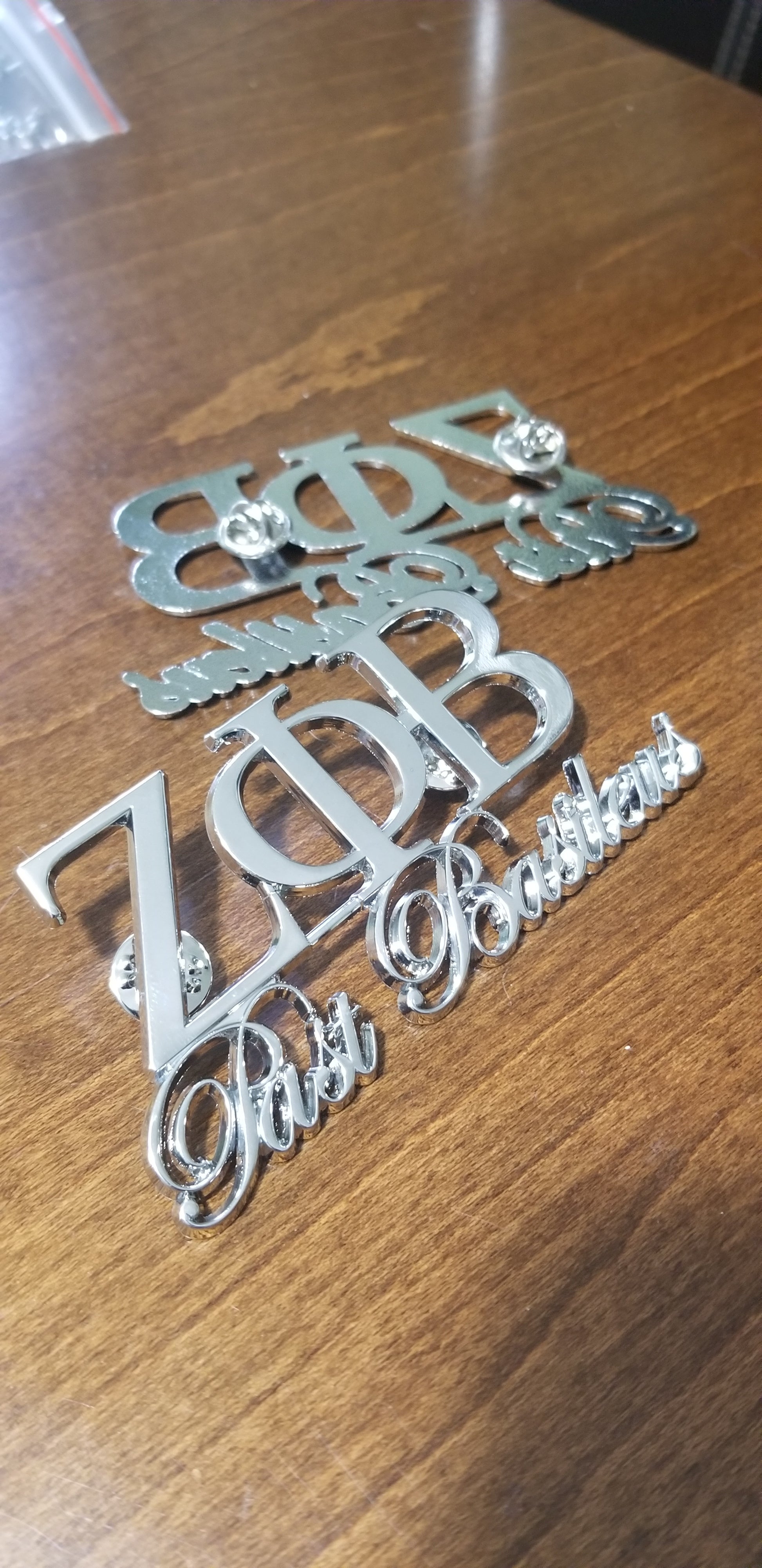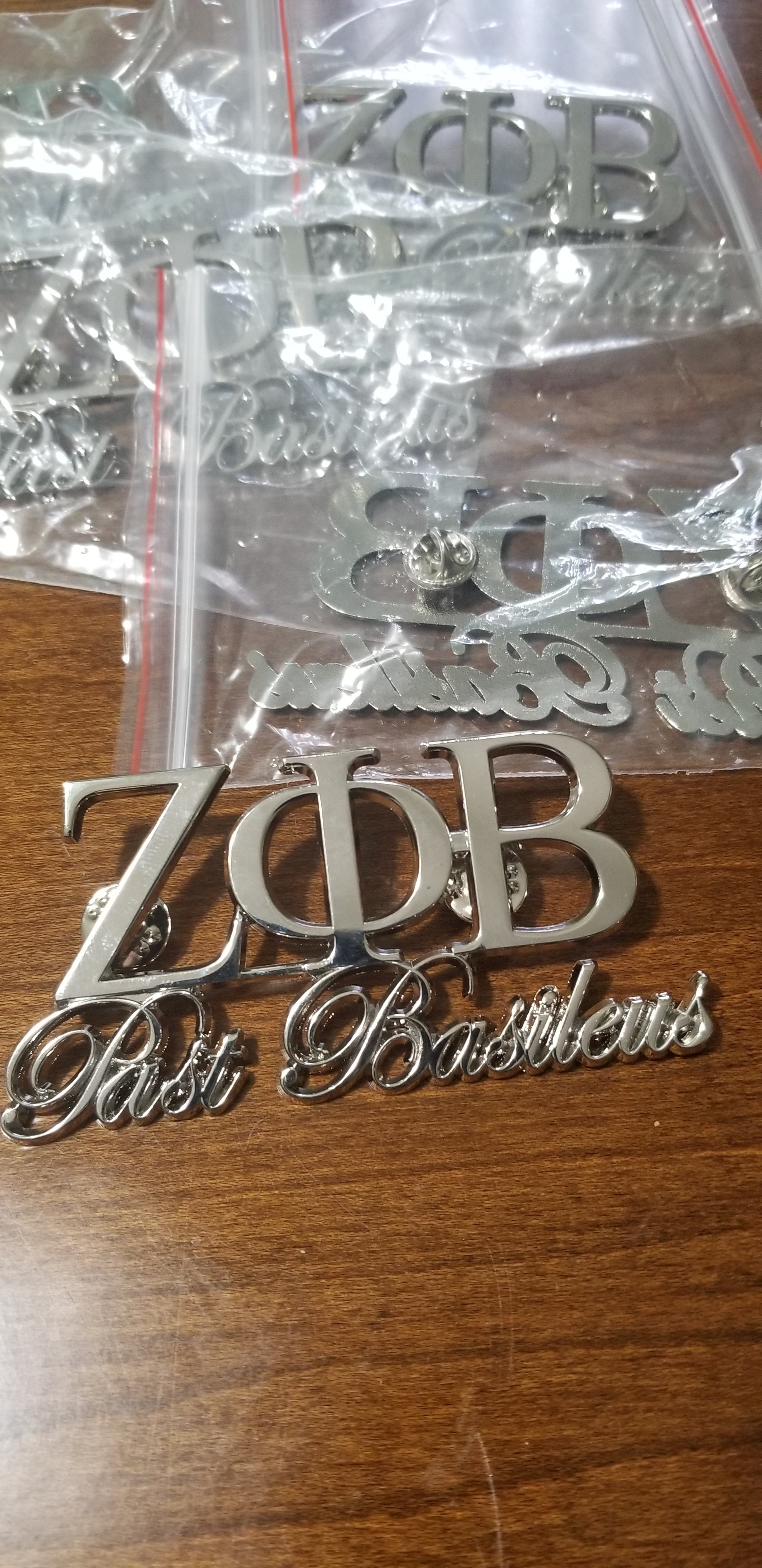 This cute, girly Greek Lettered Past Basileus lapel pin is perfect to showcase those who have fulfilled the role. Wear to your Chapter Meetings and Conferences. Large in size and weight with 2 prongs for securing.