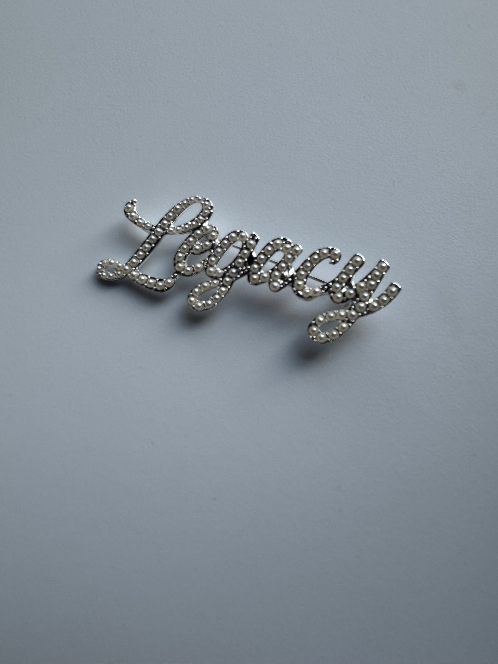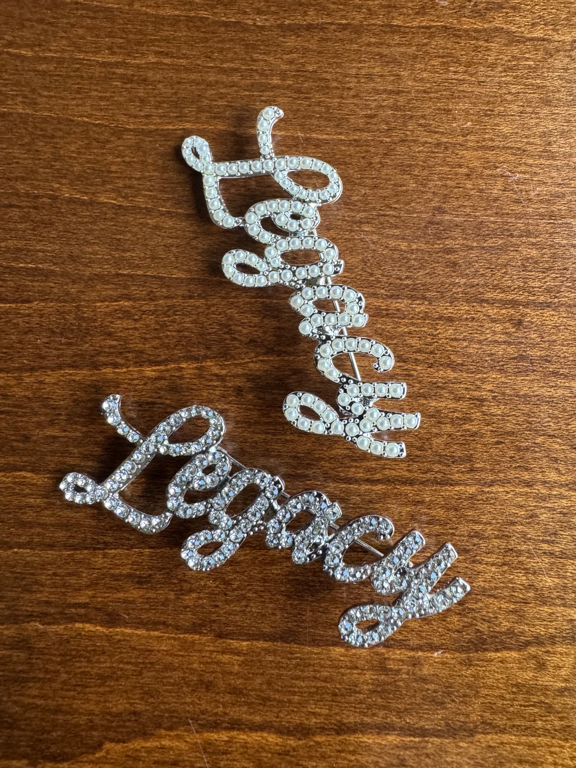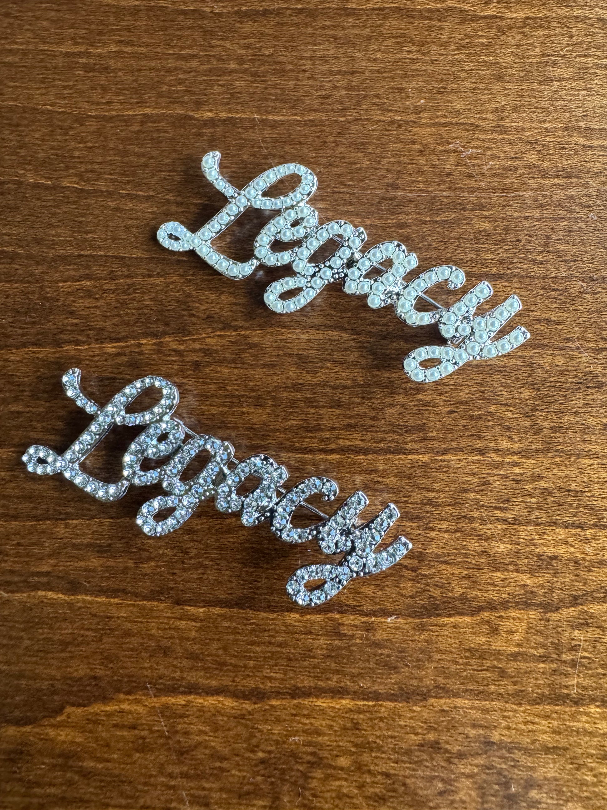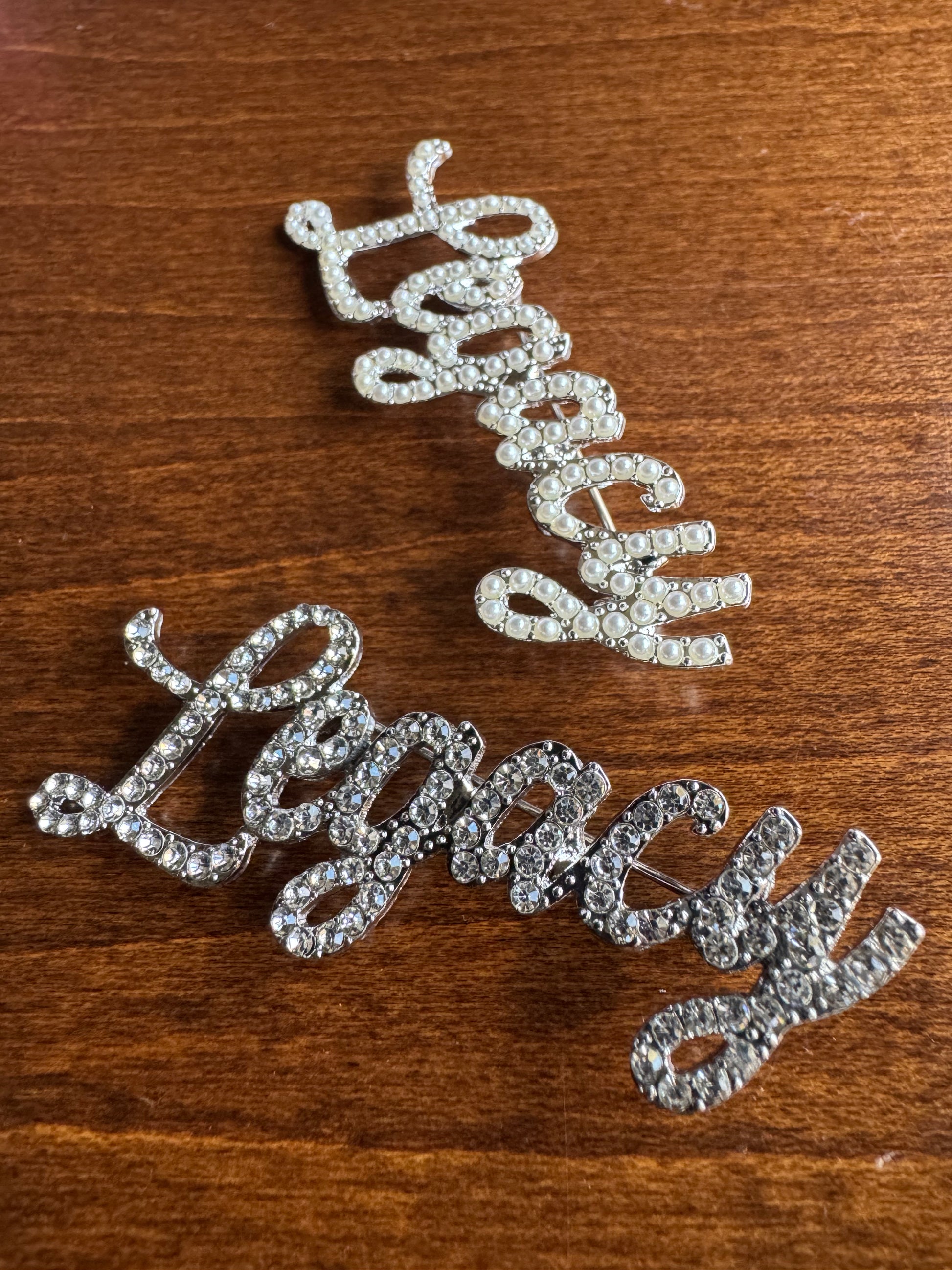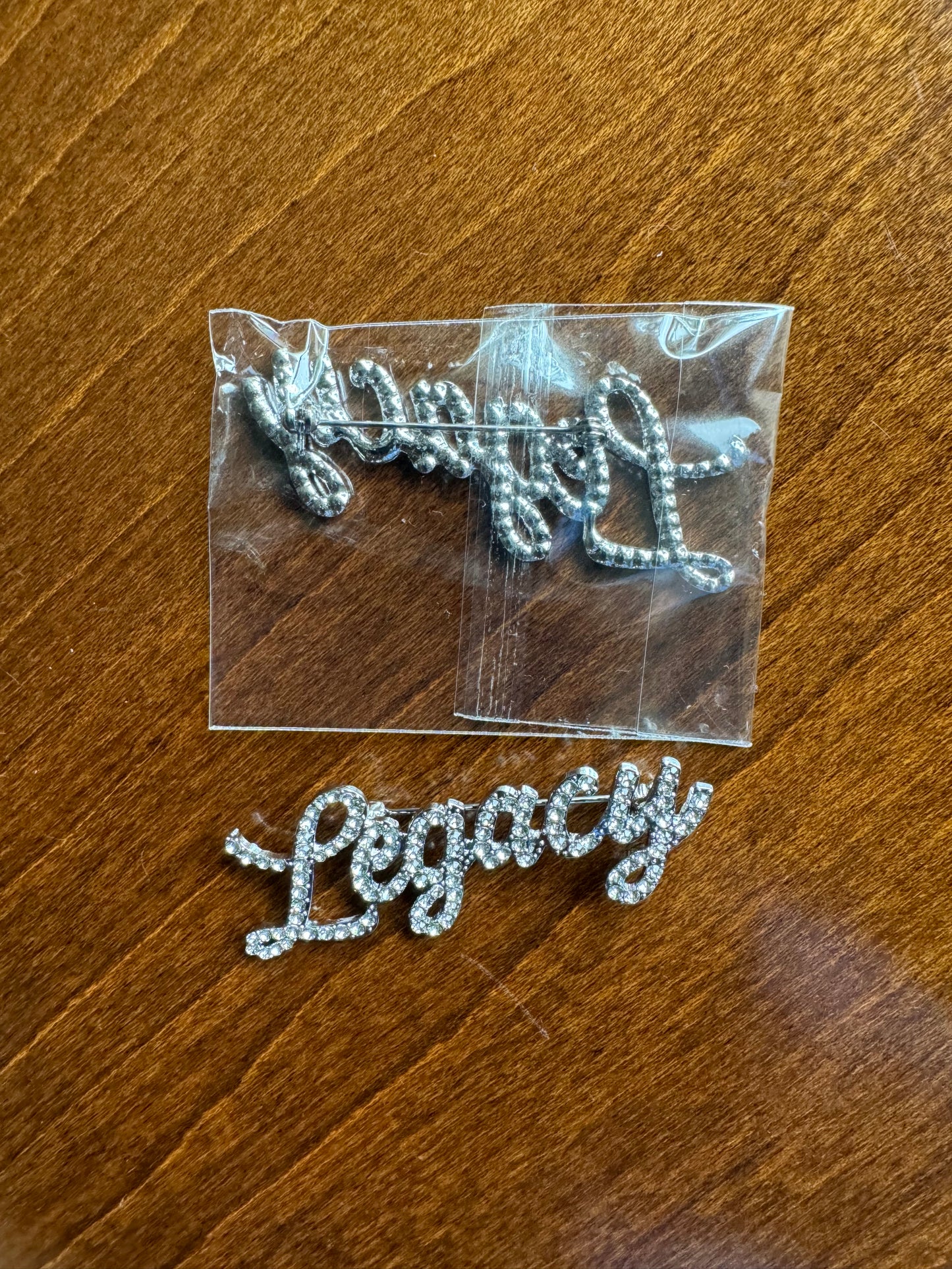 For the Legacy in you! This is a gorgeous feminine lapel pin to add to your collection. This is a 2 inch lapel pin is adorned in clear stones.