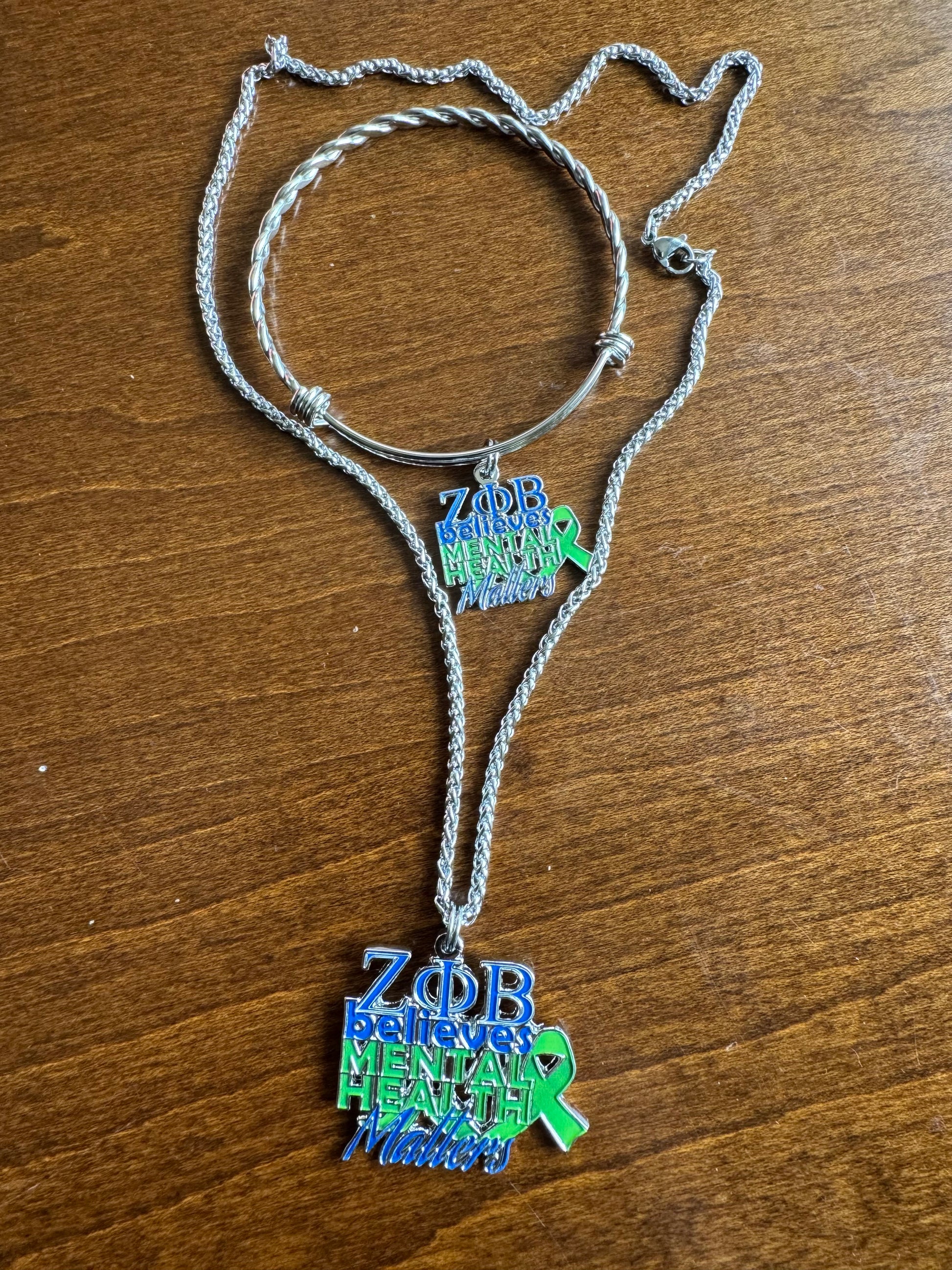 BRAND NEW ITEM! Bring awareness in a Finer Way! This lapel pin, bracelet & necklace set is beautifully designed. It’s a statement piece for sure! Pin is adorned with 5 raised pearls to commemorate Zeta Phi Beta Sorority, Inc's Founders. Pin has two prongs on the back to secure it.