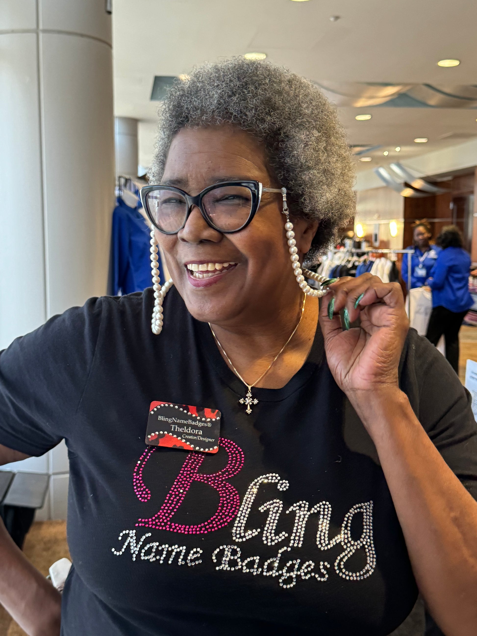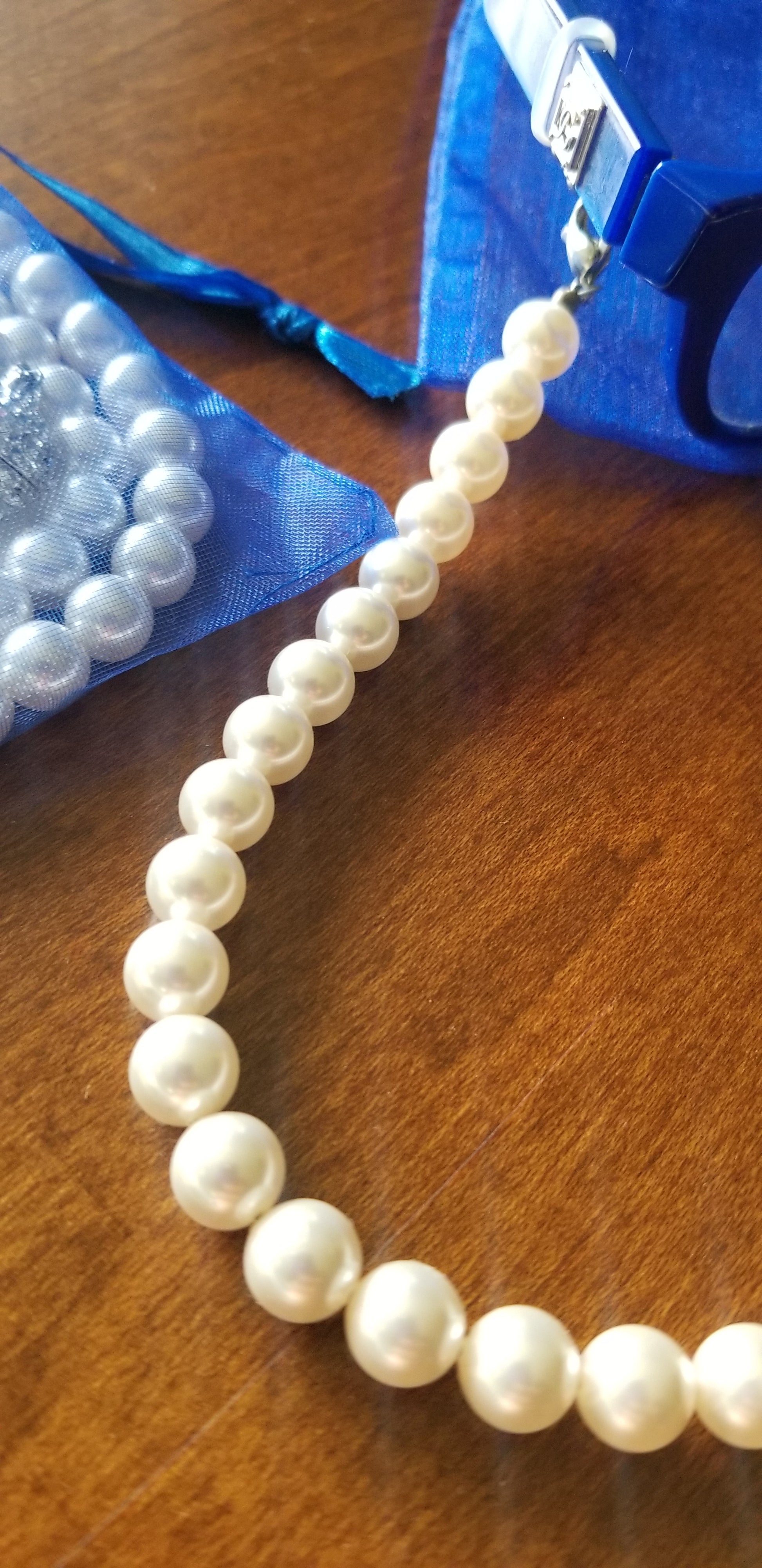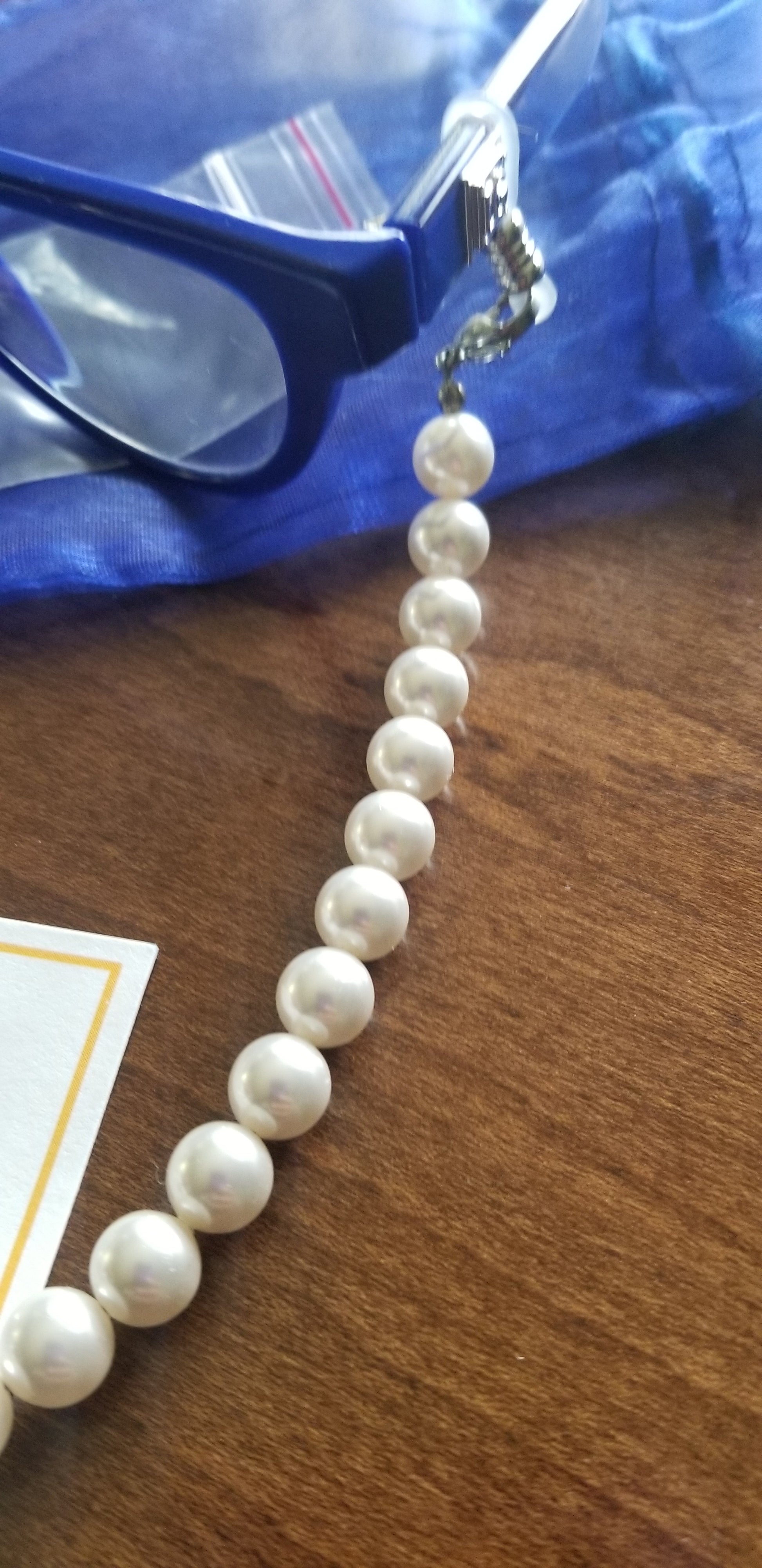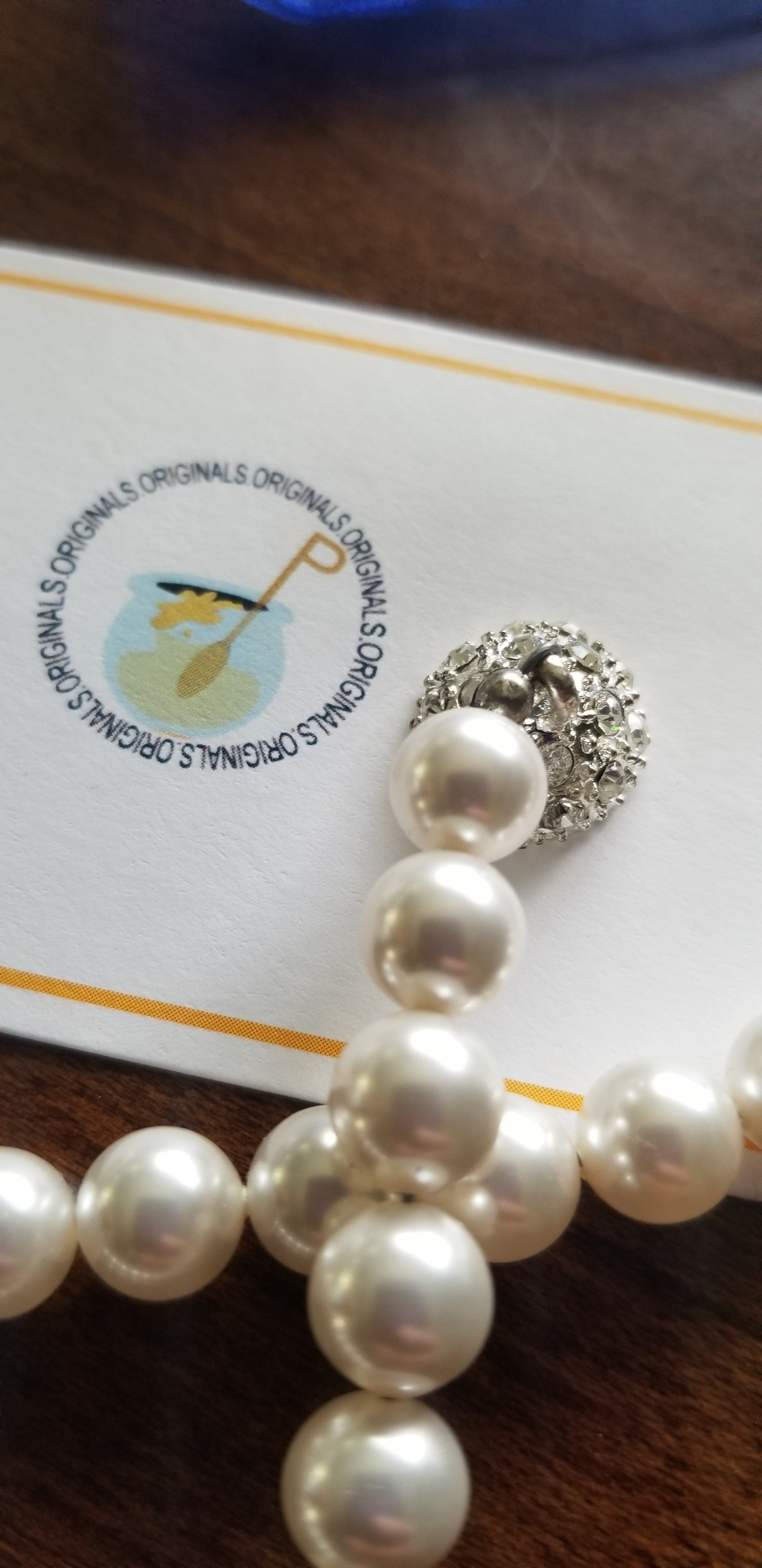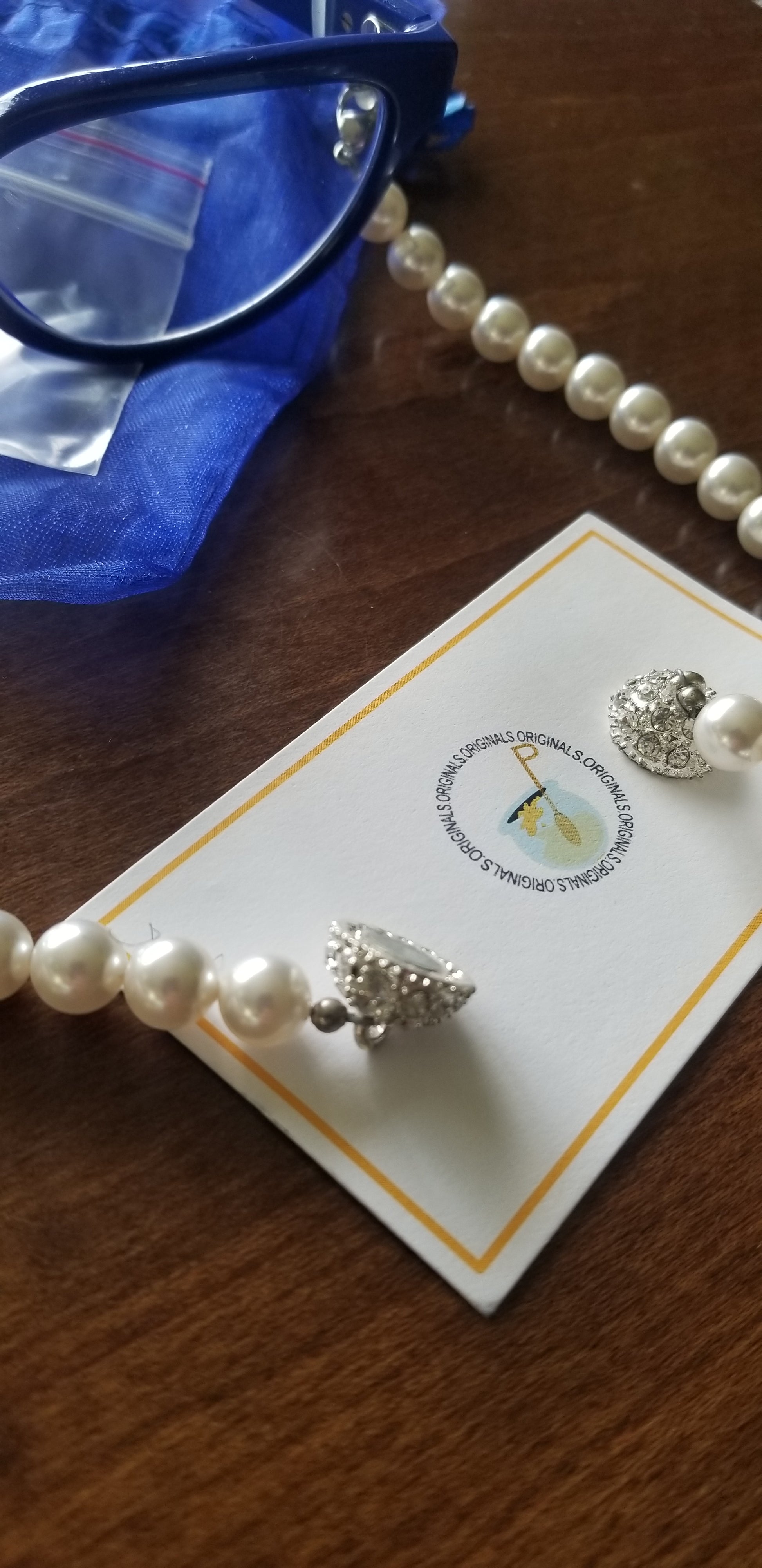 (PRE-ORDER) A beautiful custom made design by Honee P Originals, meticulously hand designed! These speclaces are a heavy weight and elegantly hold any pair of eyeglasses or even sunglasses. Strands of pearls have a magnetic clasp for easy break away. When you forget your necklace, you can turn these eyeglass holders into a pearl necklacks and accessorize any outfit. (Glasses not included)