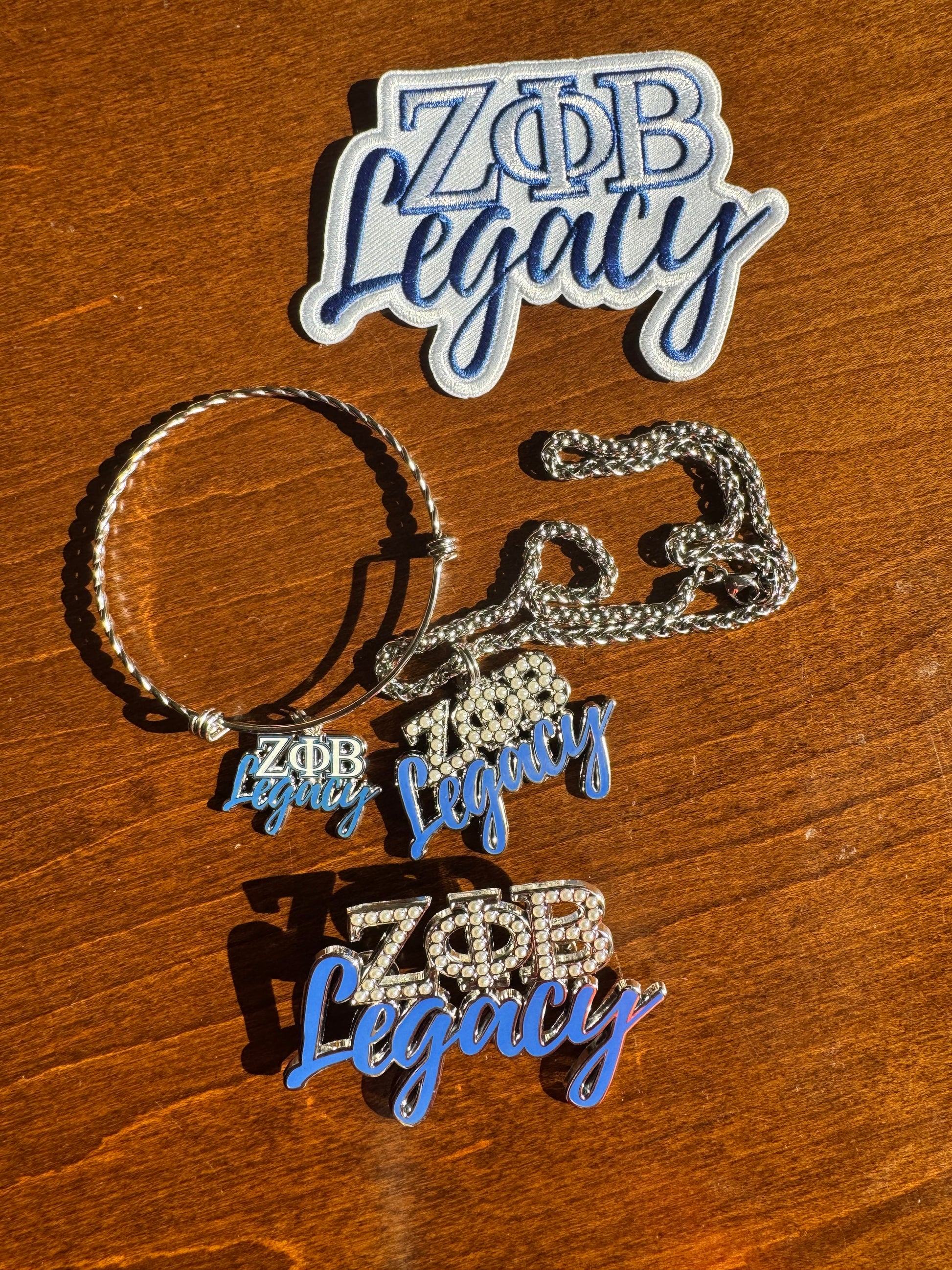 BRAND NEW ITEM! This exclusive lapel pin, bracelet & necklace are each beautifully designed only for those with the distinction of being a Legacy! Made for both Zeta and Zeta Amicae!!!! Each piece makes a bold statement. Pin has two prongs on the back to secure it.