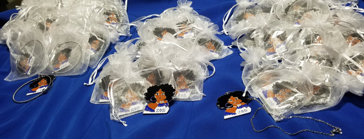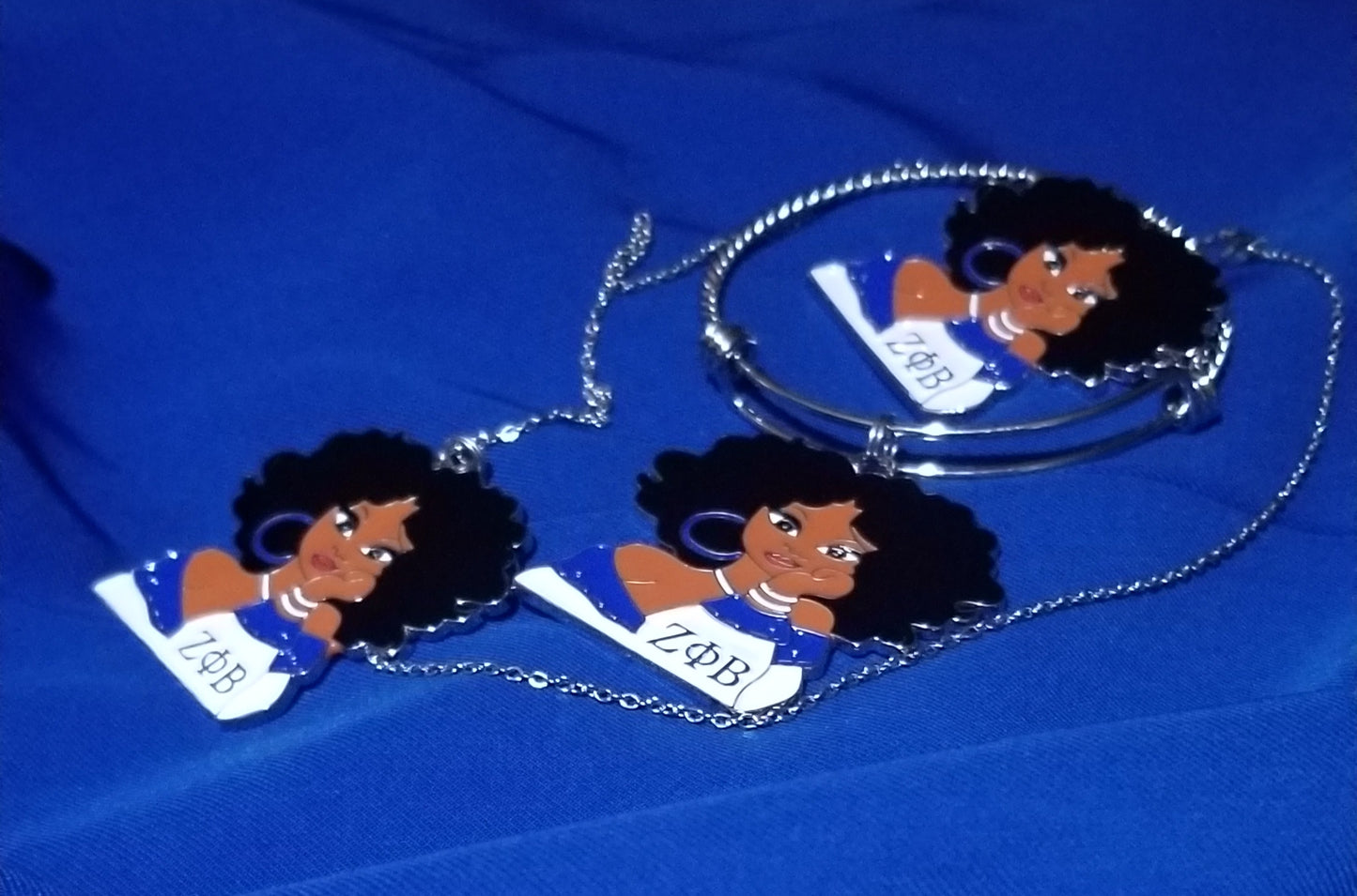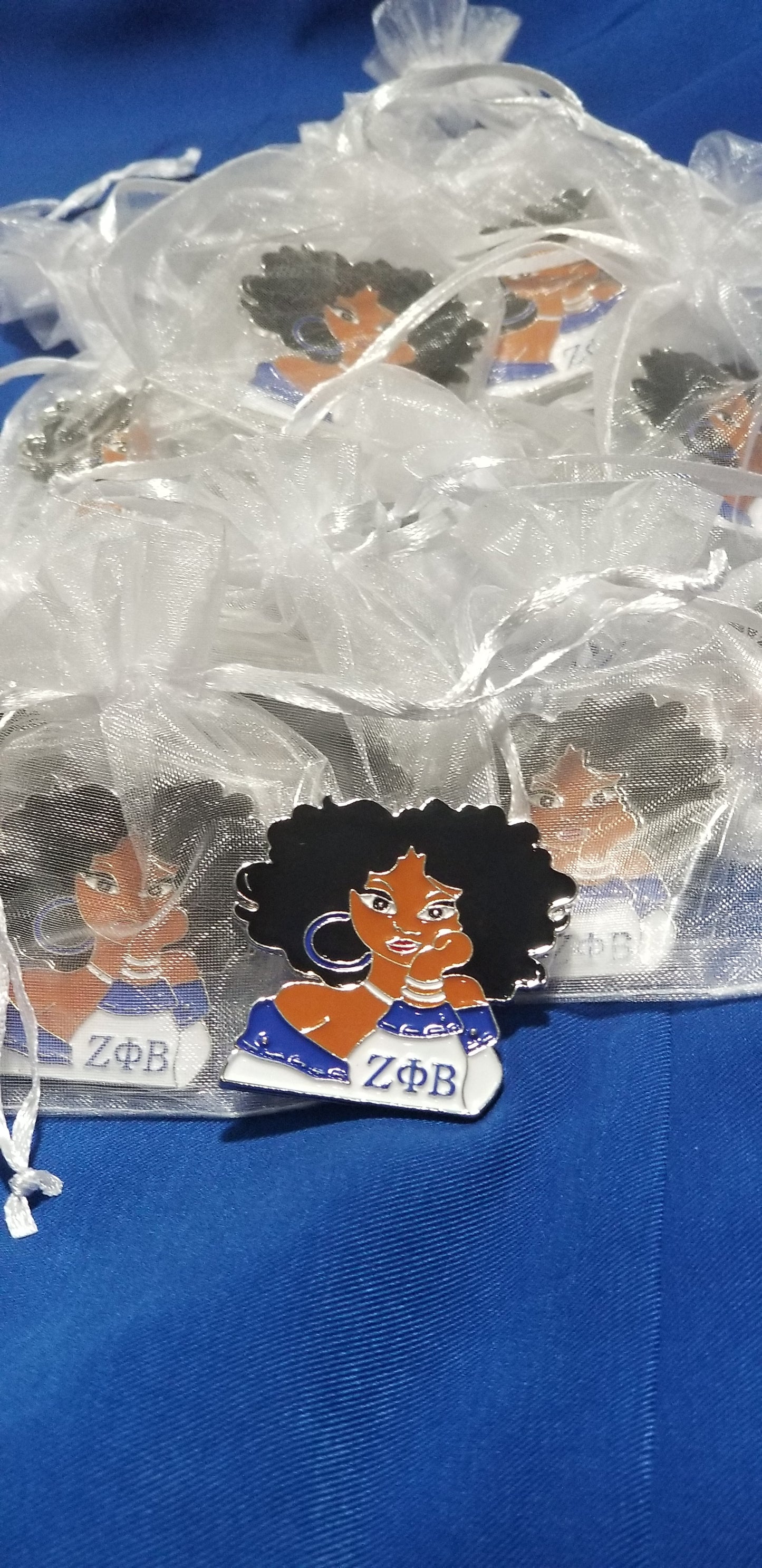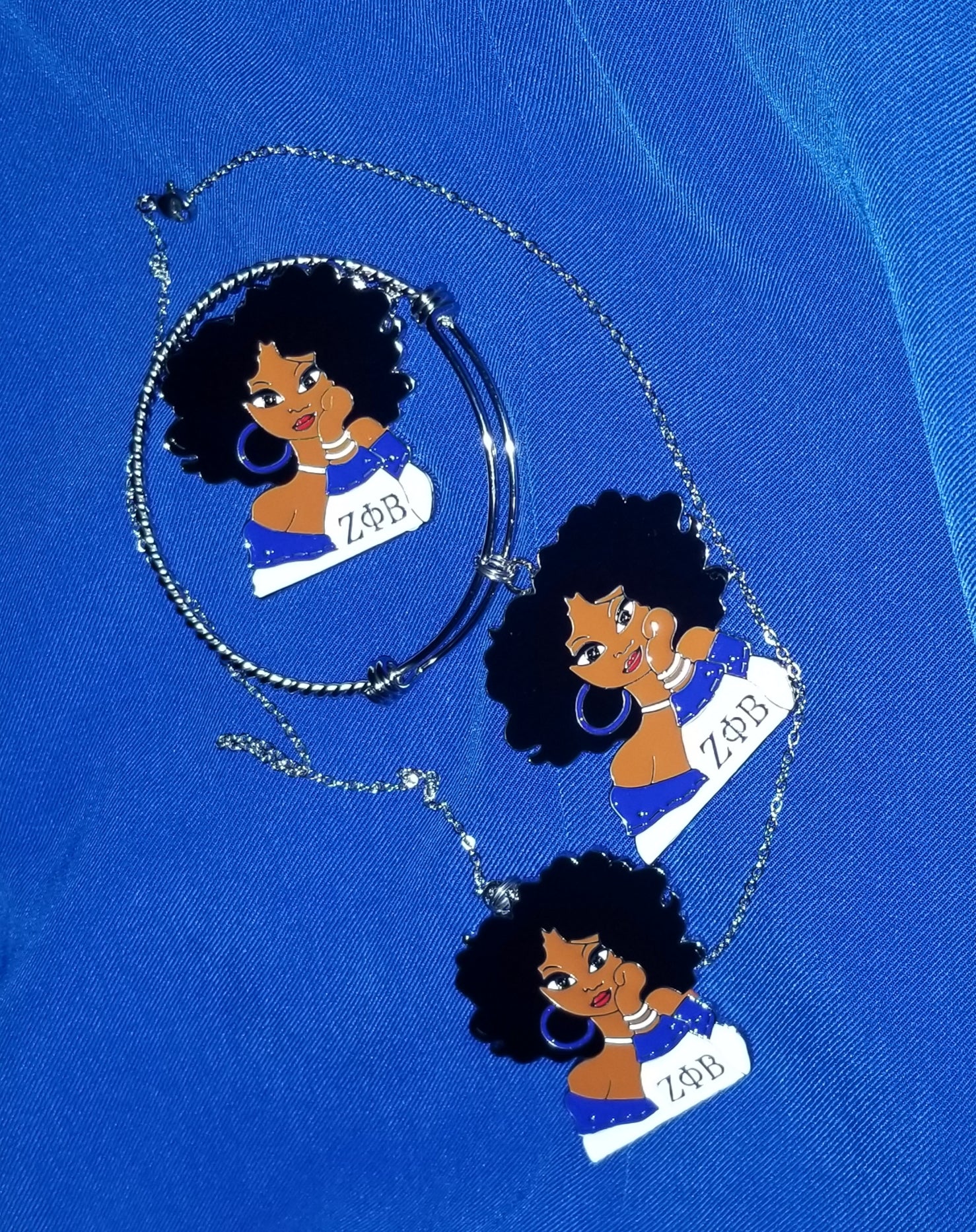 Soror Girl charm available on a Stainless Steel bracelet, as a necklace on an 18 inch stainless steel link chain or as a lapel pin. Options, options, options!